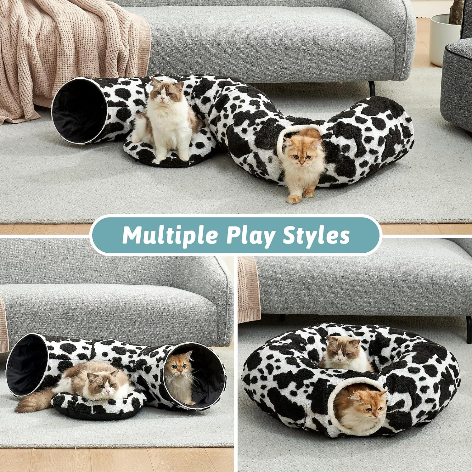 2-in-1 Cat Tunnel & Bed – Converts from a play tunnel to a cozy bed, suitable for cats up to 15 lbs and small pets.